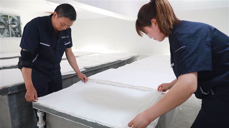 10月9日下午,縣長吳云忠赴海陽鎮凝霜文化發展公司調研徽州楮皮紙傳承與發展工作,縣委常委、海陽鎮黨委書記金學年,縣委常委、縣政府副縣長程衛華參加調研活動。 吳云忠一行實地察看了徽州楮皮紙生產工藝流程,認真聽取企業負責人介紹,詳細詢問徽州楮皮紙制作工藝