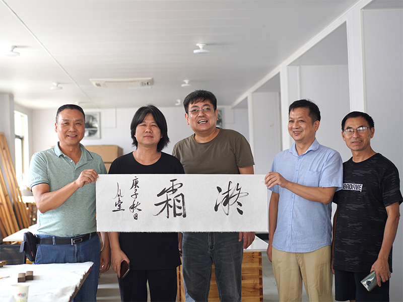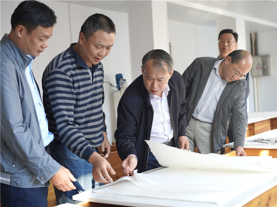 浙江省文化廳新安傳統文化調研,畫家樓森華、樓秋華和版畫藝術家王超在公司。徽州楮皮紙