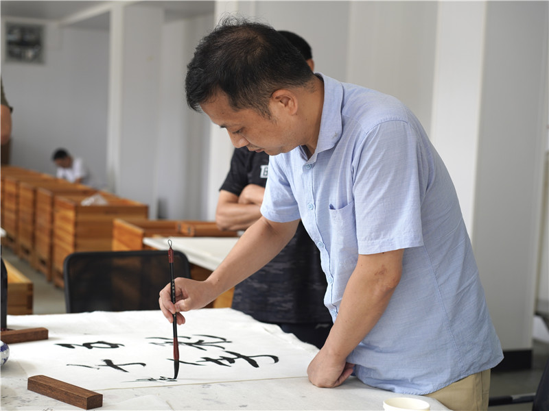 感謝休寧縣書法協會主席胡社文陪同安徽省青年書法家協會主席王亞洲等藝術家到公司指導,體驗徽州楮皮紙傳統技藝。