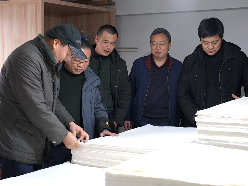 2021年1月26日,休寧縣政協主席儲曉華來公司調研徽州楮皮紙制作技藝傳承和發展情況。